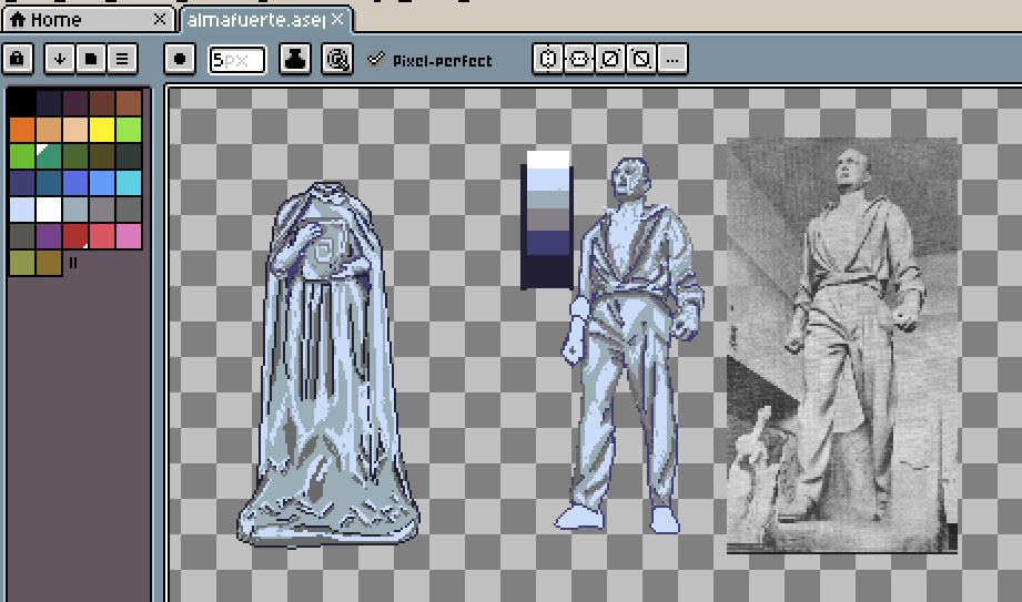 Como solo sé manejar Construct 3, pensaba hacer un poco de pixelar, y de ahí salieron las estatuas.
